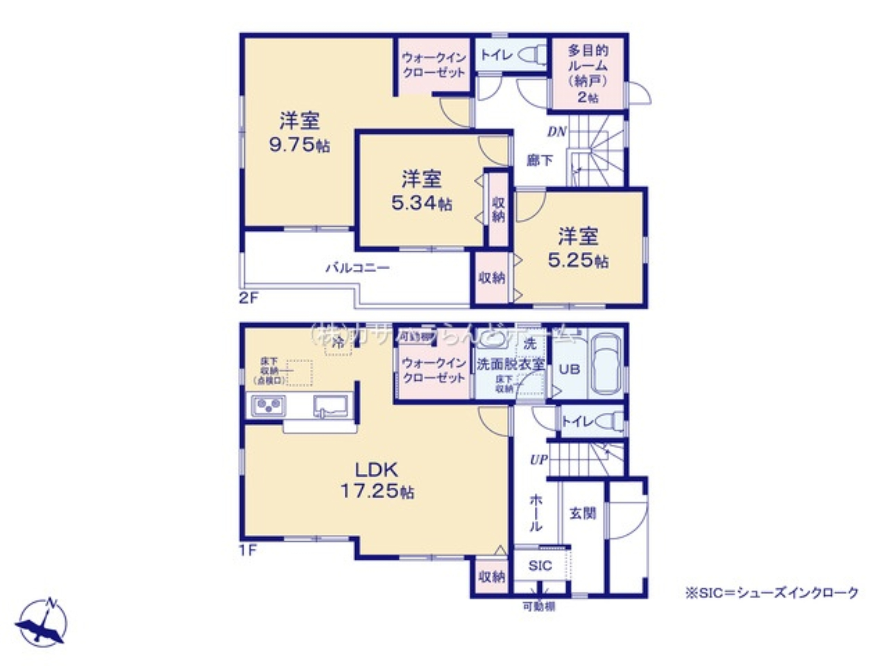 (1F)LDK17.25、(2F)洋9.75、(2F)洋5.34、(2F)洋5.25、(2F)書斎2 |