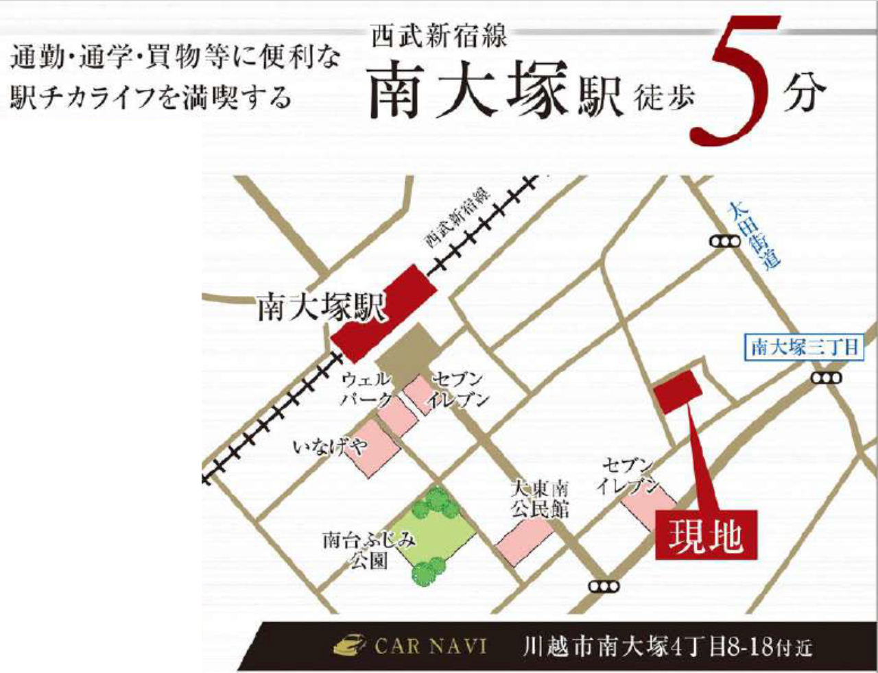 【5号棟】 ☆グラファーレ川越市南大塚 新築一戸建て全11棟現場 ★新築仲介手数料無料! ☆西武新宿線「南大塚駅」徒歩5分の家! ☆木造軸組み工法と構造用合板パネル工法の耐震性! ☆IDS工法の地震に強い家! ☆住宅性能評価書取得予定物件! ☆フラット35S利用可! ☆駐車場2台 ☆公営水道、本下水、都市ガス ☆サービスルーム+WIC+パントリー! ☆浴室乾燥機ユニットバス! ☆あかり保育園…徒歩6分、南二葉幼稚園…徒歩19分、セブンイレブン…徒歩3分、ウェルパーク…徒歩5分、いなげや…徒歩7分、ベルク…徒歩16分、武蔵野総合病院…徒歩19分、南台ふじみ公園…徒歩5分 ※現地販売業者さんは売主ではございません。 アンケート等の手続きをされますと当社での物件紹介(仲介料手数料無料)が出来なくなります。ご内覧を希望のお客様は当社にて立ち合い・ご案内をさせて頂きますのでお手数ですがTEL049-285-6300までお電話下さい。急いで現地へ向かいますので御連絡お待ちしております。 |