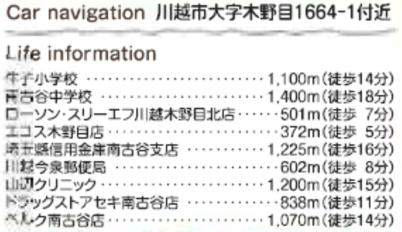 【3号棟】 ☆川越市木野目 新築一戸建て 全4棟現場 ★新築仲介手数料0円無料! ☆JR川越線『南古谷駅』徒歩15分! ☆東武東上線『新河岸駅』32分、『上福岡駅』徒歩38分! ☆敷地面積45坪! ☆商業施設も近く生活に便利な場所! ☆家族みんなで使用できるファミリークローゼットあり! ☆ワイドなインナーバルコニー付き! ☆駐車場1台! ☆川越市立牛子小学校まで徒歩14分、南古谷中学校まで徒歩18分の通学距離です! ☆公営水道、本下水、都市ガス ☆ローソン・スリーエフ川越木野目北店(約501m)、エコス木野目店(約372m)、埼玉縣信用金庫南古谷支店(約1225m)、川越今泉郵便局(約602m)、山辺クリニック(約1200m)、ドラッグストアセキ南古谷店(約838m)、ベルク南古谷店(約1070m) |