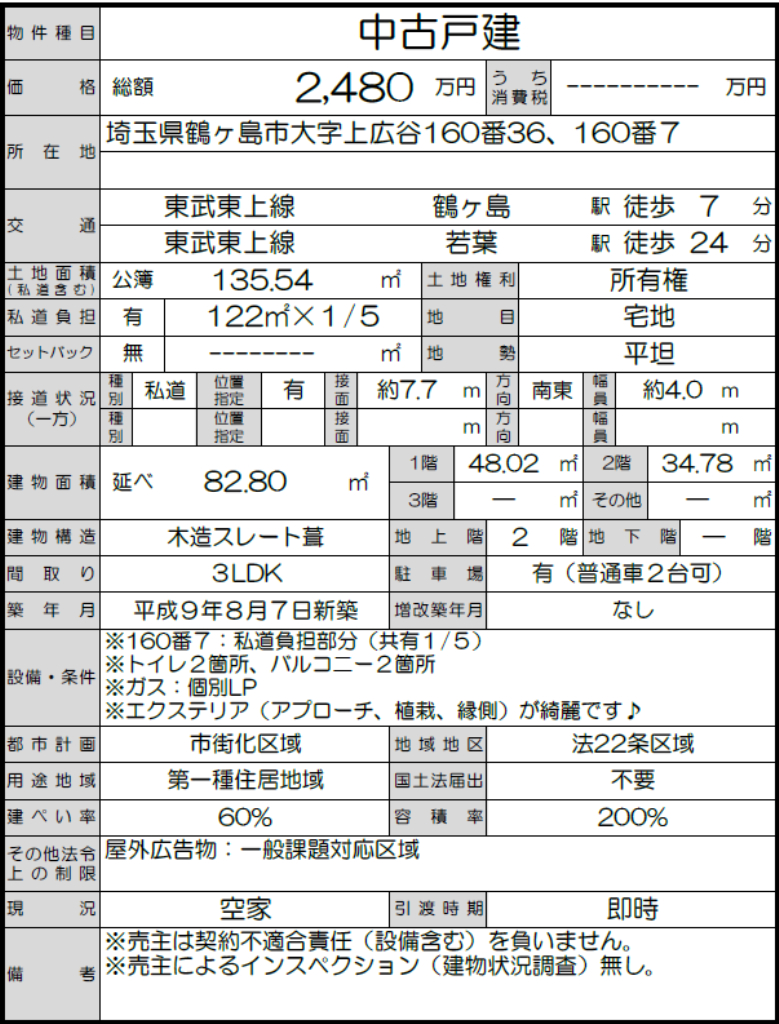 ※掲載されている物件データが現状と異なる場合は現状を優先します。