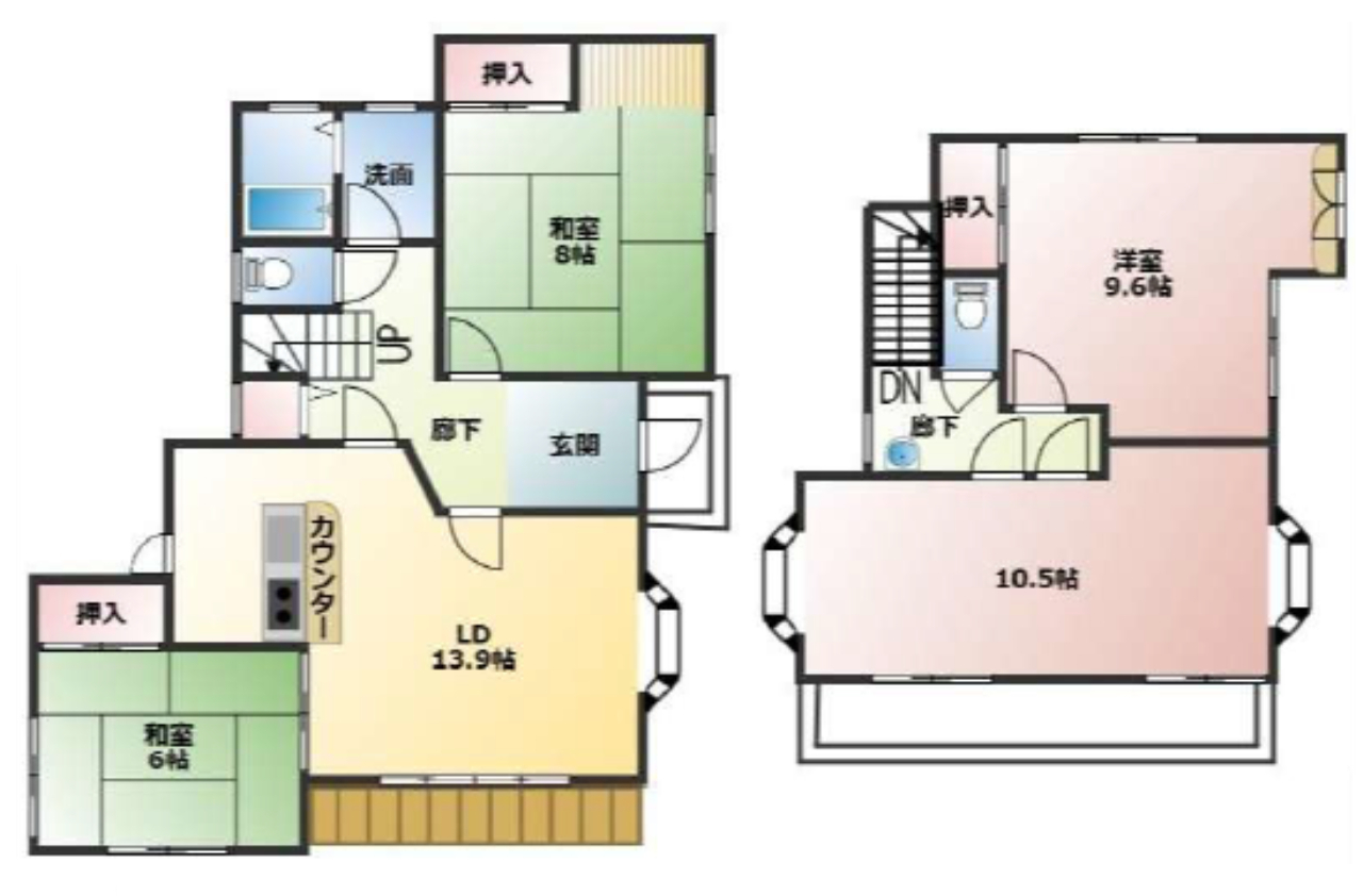 (1F)LDK13.9、(1F)和8、(1F)和6、(2F)洋9.6、(2F)洋10.5 |