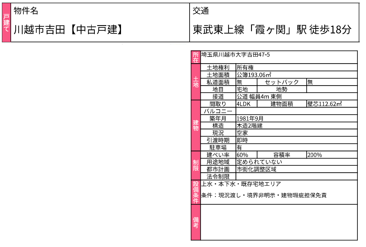 ※掲載されている物件データが現状と異なる場合は現状を優先します。
