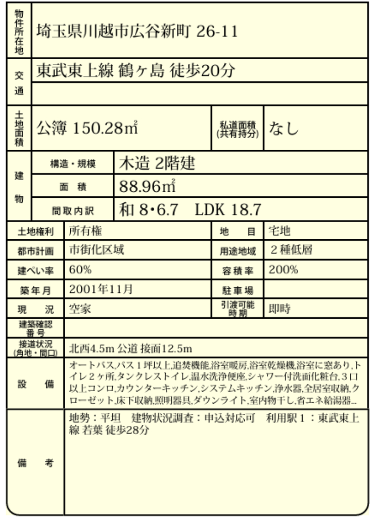 東武東上線鶴ヶ島駅まで 徒歩20分 |