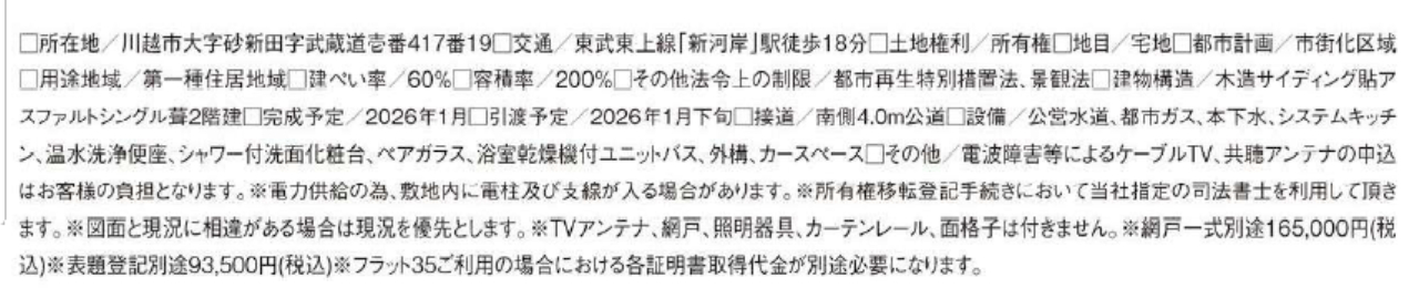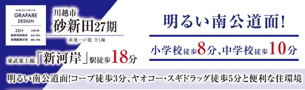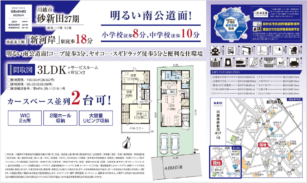 ☆グラファーレ川越市砂新田27期 新築一戸建て ★新築仲介手数料無料! ☆東武東上線『新河岸駅』徒歩18分! ☆敷地面積30坪! ☆南道路で陽当りの良い家! ☆テレワークに便利なサービスルームあり! ☆リビングイン階段や対面キッチンを備えたリビング! ☆システムキッチン、温水洗浄便座、ぺアガラス、浴室乾燥機付きユニットバス、TVモニター付きインターホン、24時間換気システムなどの設備です! ☆駐車場2台! ☆川越市立高階西小学校まで徒歩8分、高階西中学校まで徒歩10分の通学距離です! ☆瑕疵担保保険加入物件! ☆住宅性能評価書取得! ☆フラット35S利用可! ☆ZEH水準! ☆公営水道、本下水、都市ガス ☆藤原白百合幼稚園…徒歩7分、音羽の森保育園…徒歩8分、コープ…徒歩3分、ヤオコー…徒歩5分、スギドラッグ…徒歩5分、セブンイレブン…徒歩9分、生鮮市場…徒歩9分、南之台公園…徒歩4分 ※現地販売業者さんは売主ではございません。 アンケート等の手続きをされますと当社での物件紹介(仲介料手数料無料)が出来なくなります。ご内覧を希望のお客様は当社にて立ち合い・ご案内をさせて頂きますのでお手数ですがTEL049-285-6300までお電話下さい。急いで現地へ向かいますので御連絡お待ちしております。 |