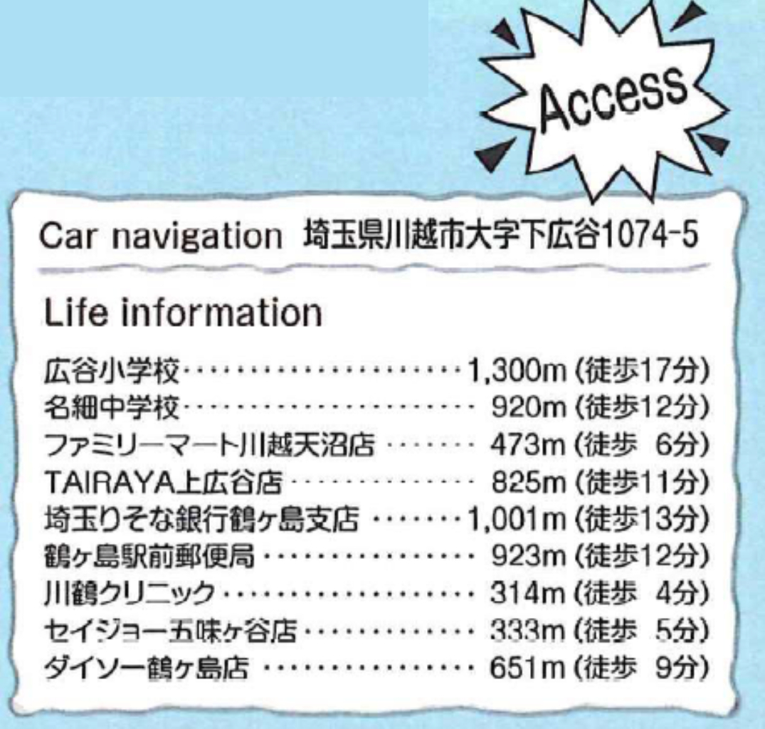 東武東上線鶴ヶ島駅まで 徒歩14分 |