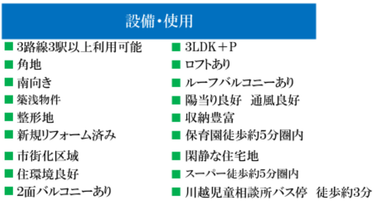 ☆川越市宮元町 中古戸建 ☆屋上ルーフバルコニー! ☆ロフト付き! ☆リフォーム済み! ☆南4m道路 ☆公営水道、本下水、プロパンガス ☆駐車場2台 ☆日当り良好! |