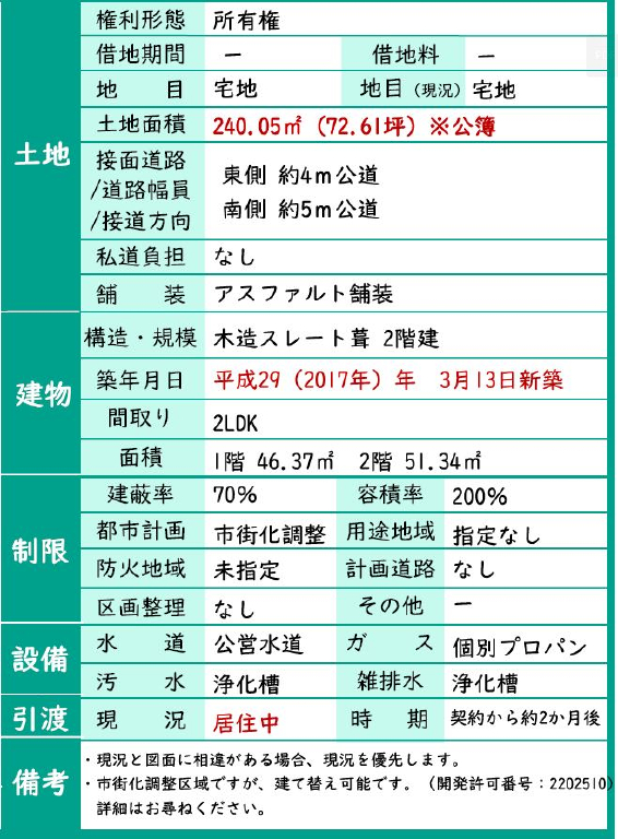 ☆平成29年3月完成、築浅2LDK中古住宅です!