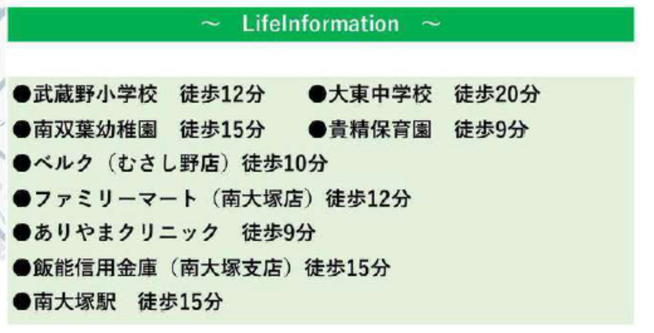 西武新宿線南大塚駅まで 徒歩15分 |