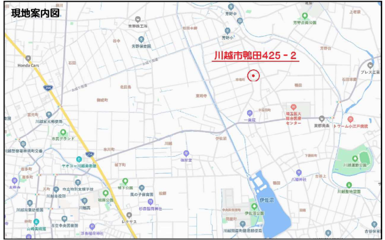 ☆川越市鴨田 建築条件無売り地! ★仲介手数料無料土地! ☆東武東上線『川越駅』バス26分、バス停『鴨田』停歩9分! ☆土地面積82坪! ☆建築条件はありません。お好きなハウスメーカーで建築できます! ☆陽当たり良好! ☆川越市立芳野小学校、芳野中学校の通学区です ☆公営水道、個別プロパンガス、農業集落排水 ☆どなたでも建築できる土地です!(34条11号適用含む) ☆セブンイレブン…徒歩12分、川越市役所芳野市民センター…徒歩22分、埼玉医科大学総合医療センター…徒歩10分、フライングガーデン…徒歩10分 |