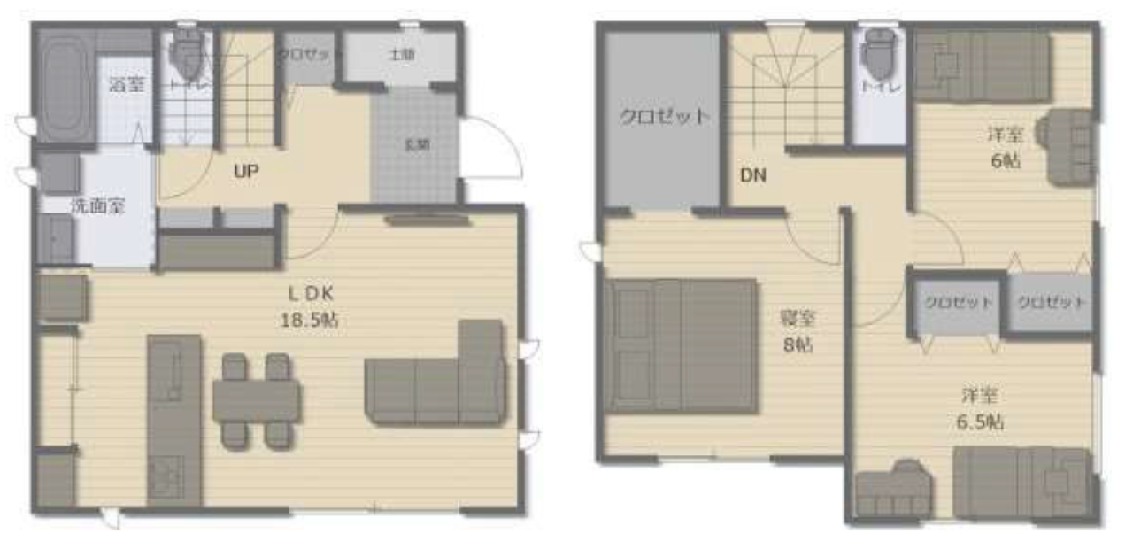 (1F)LDK18.5、(2F)洋8、(2F)洋6.5、(2F)洋6  |
