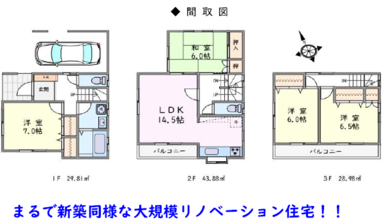(1F)洋7、(2F)LDK14.5、(2F)和6、(3F)洋6、(3F)洋6.5  |