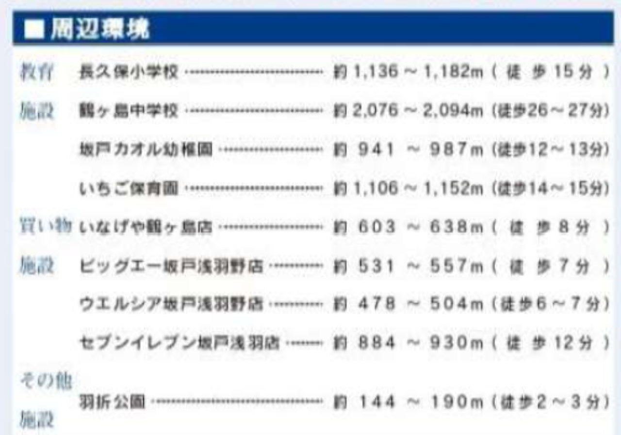 【4号棟】 ☆鶴ヶ島市羽折町 新築一戸建て 全4棟現場 ★新築仲介手数料無料! ☆東武東上線『坂戸駅』徒歩16分! ☆敷地面積53坪! ☆勝手口がある対面キッチンや続き間の和室を備えたリビング! ☆突然の雨でも洗濯物が濡れにくいインナーバルコニー! ☆駐車場3台! ☆長期優良住宅! ☆住宅性能評価書取得! ☆BELS省エネ! ☆耐震+制震等級3! ☆フラット35S利用可! ☆鶴ヶ島市立長久保小学校、鶴ヶ島中学校の通学区です ☆公営水道、本下水、都市ガス ☆坂戸カオル幼稚園(約941m)、いちご保育園(約1100m)、いなげや鶴ヶ島店(約603m)、ビッグエー坂戸浅羽野店(約531m)、ウエルシア坂戸浅羽野店(約478m)、セブンイレブン坂戸浅羽店(約884m)、羽折公園(約144m) |