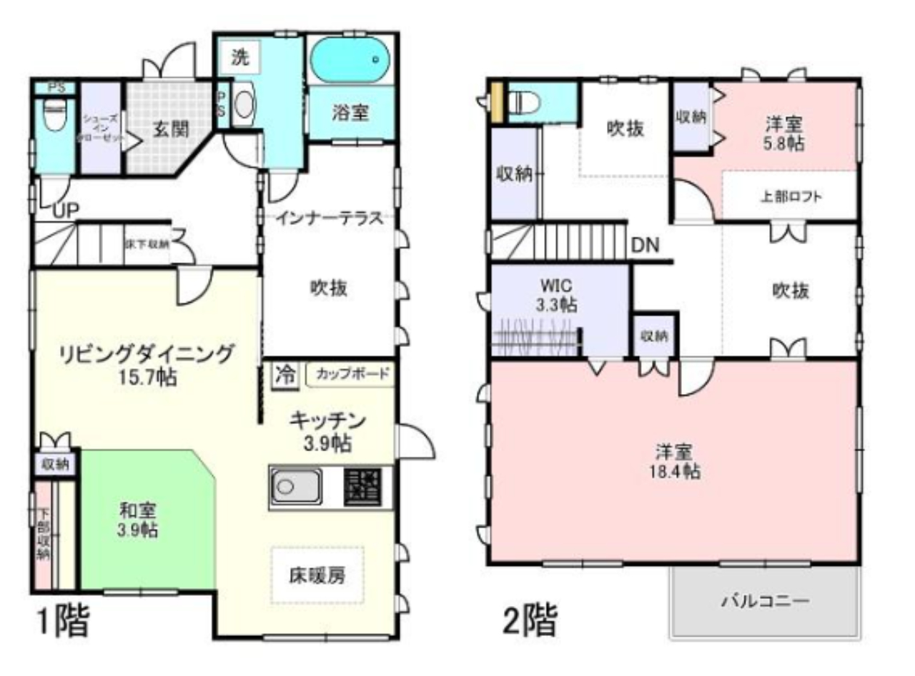 (1F)LD15.7、(1F)K3.9、(1F)和3.9、(2F)洋18.4、(2F)洋5.8 |