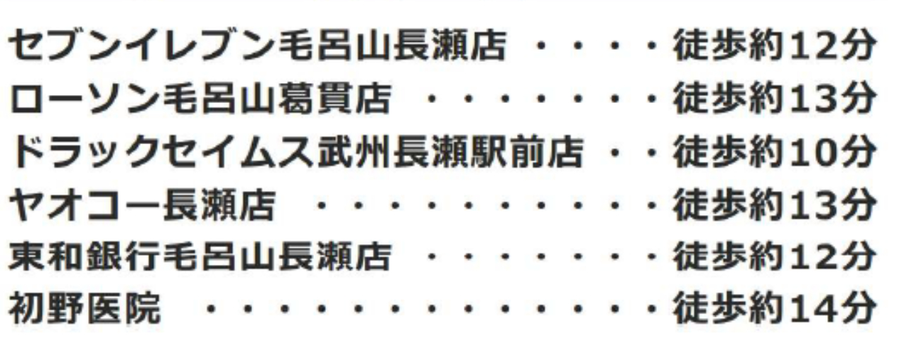 東武越生線武州長瀬駅まで 徒歩13分 |