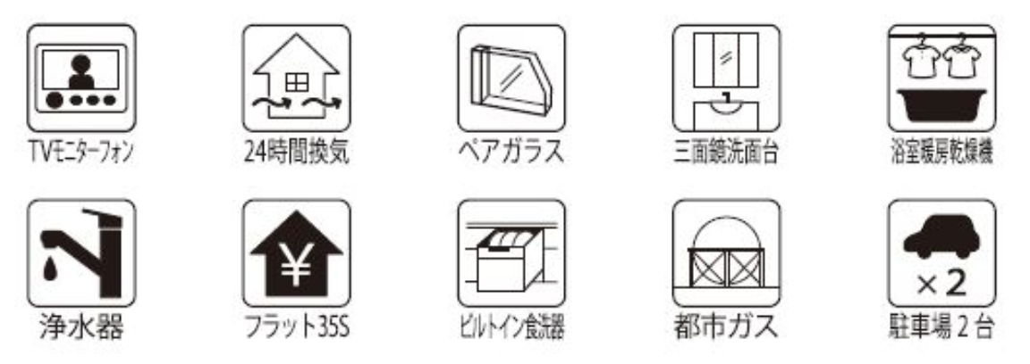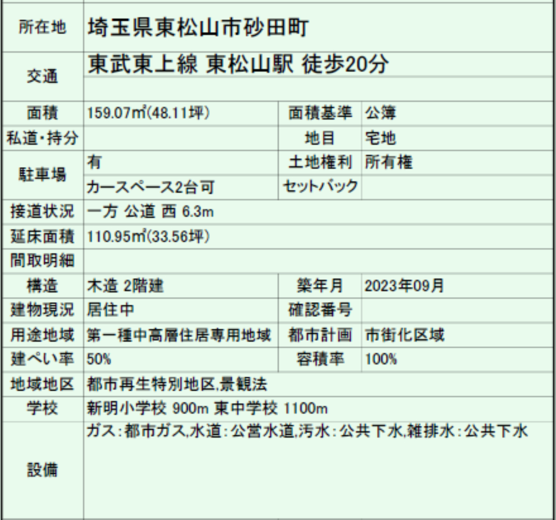☆東松山市砂田町令和5年築中古一戸建て ☆東武東上線『東松山駅』徒歩20分! ☆土地面積48坪! ☆カウンター付き対面キッチンや収納スペースがあり使いやすいリビング! ☆全室南向きで日差しをt取り込める間取りです! ☆TVモニター付きインターホン、24時間換気システム、ペアガラス、三面鏡洗面台、浴室暖房乾燥機、浄水器、ビルトイン食洗機などの設備です! ☆駐車場2台! ☆東松山市立新明小学校徒歩12分、東中学校まで徒歩14分の通学距離です! ☆公営水道、本下水、都市ガス ☆たんぽぽ保育園…徒歩10分、河野医院…徒歩10分、西友東松山店…徒歩3分、諏訪公園…徒歩4分、上松本町公園…徒歩5分 |