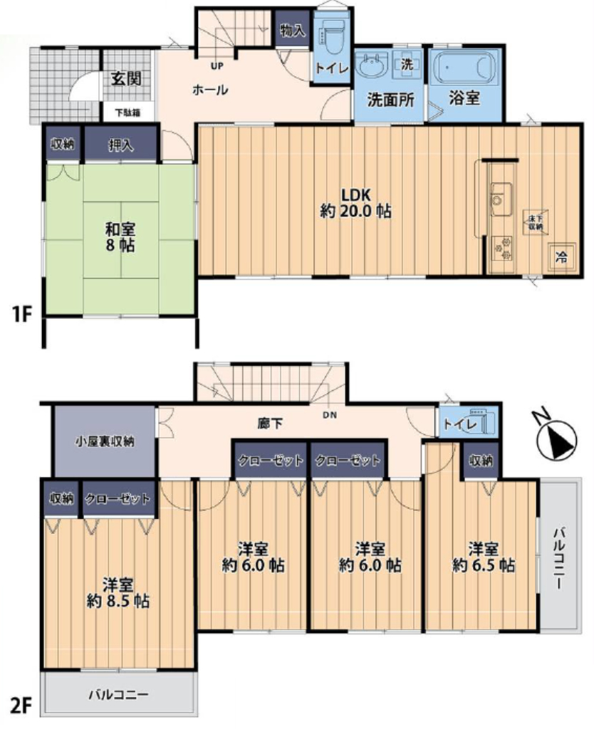 (1F)LDK20、(1F)和8、(2F)洋8.5、(2F)洋6.5、(2F)洋6、(2F)洋6 |