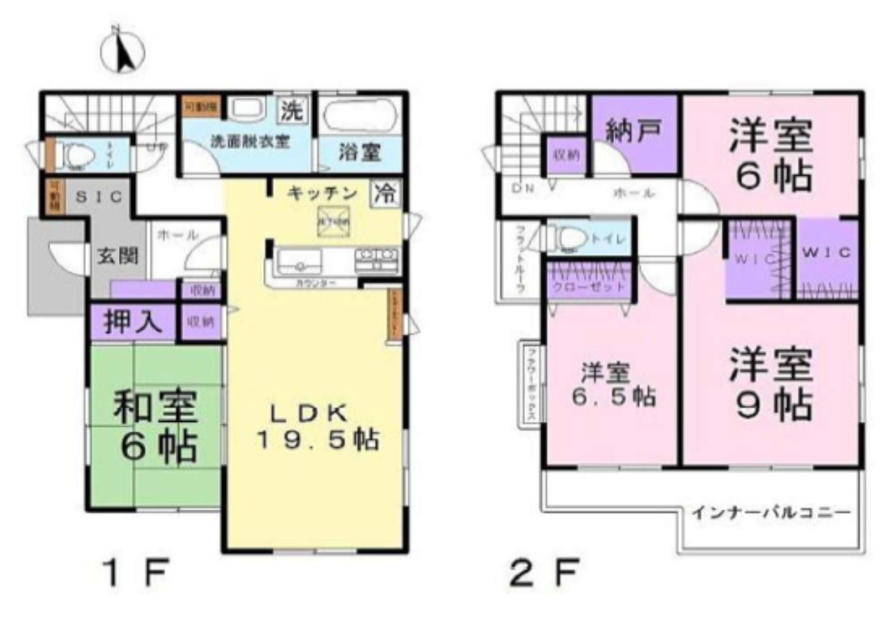 (1F)LDK19.5、(1F)和6、(2F)洋6.5、(2F)洋9、(2F)洋6、(2F)納戸 |