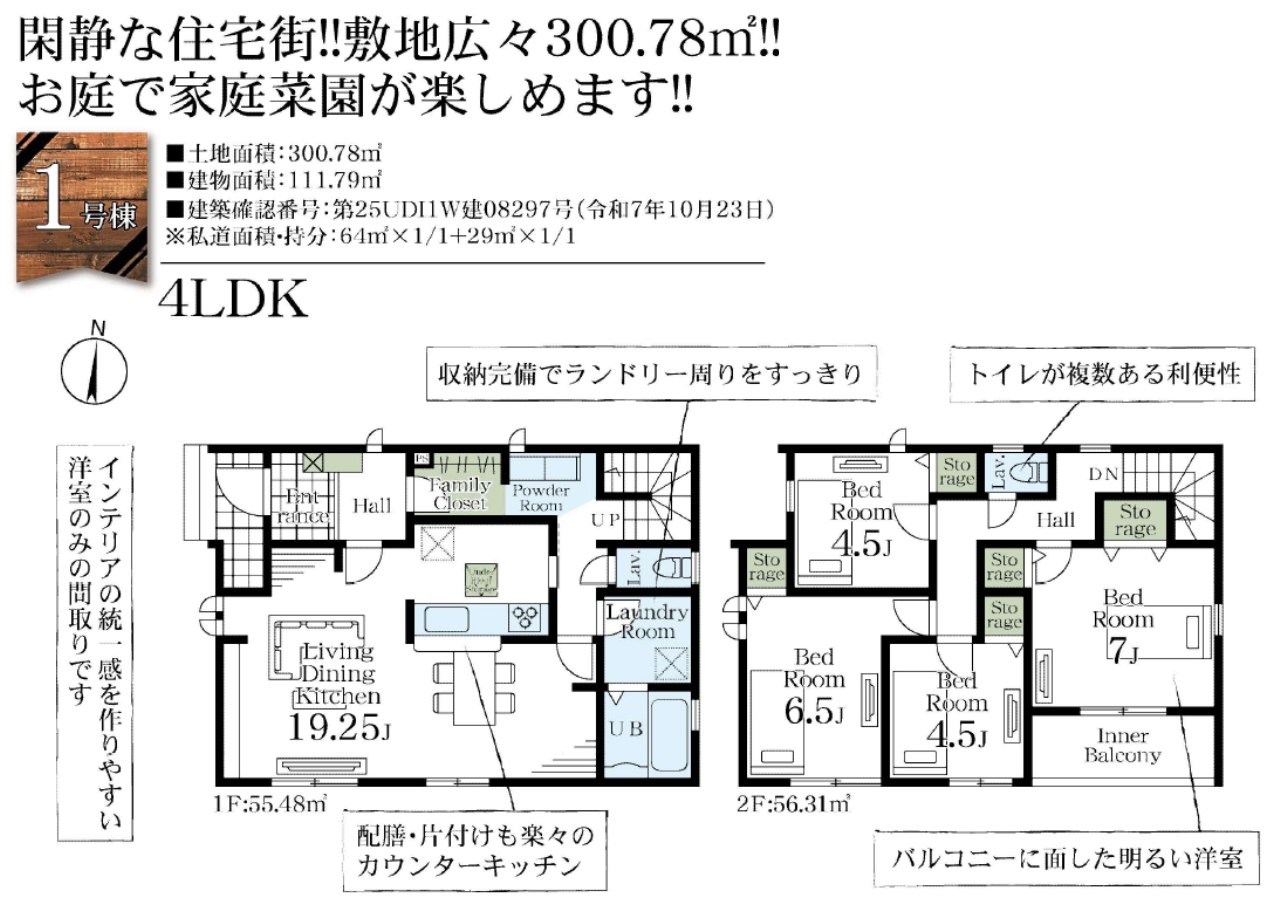 (1F)LDK19.25、(2F)洋6.5、(2F)洋4.5、(2F)洋4.5、(2F)洋7 |