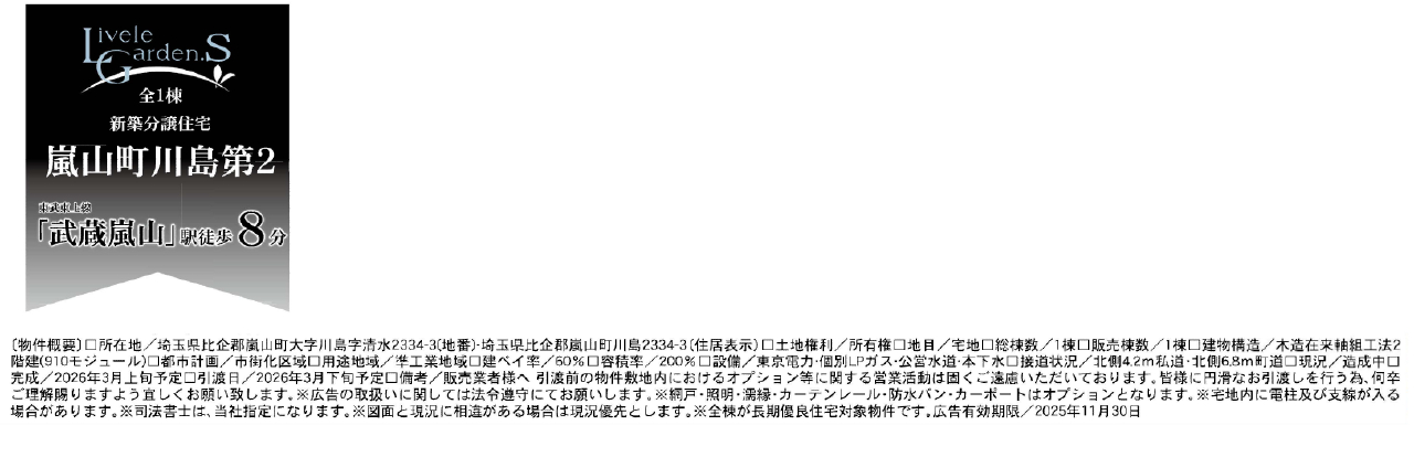 東武東上線武蔵嵐山駅まで 徒歩8分 |