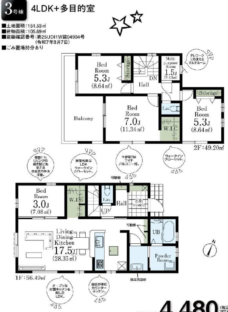 (1F)LDK17.5、(1F)洋4.3、(2F)洋5.3、(2F)洋5.3、(2F)洋7 |