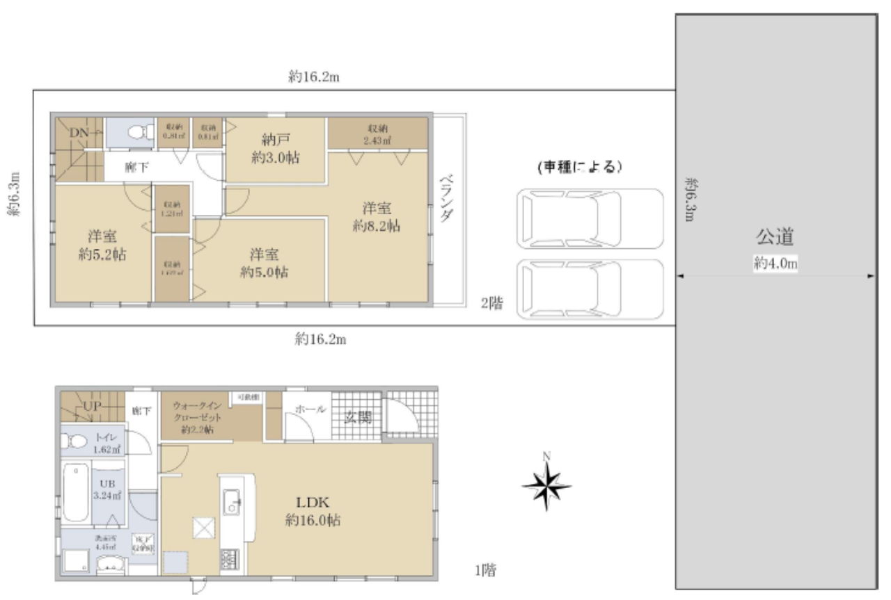 (1F)LDK16、(2F)洋8.2、(2F)洋5、(2F)洋5.2、(2F)納戸3 |