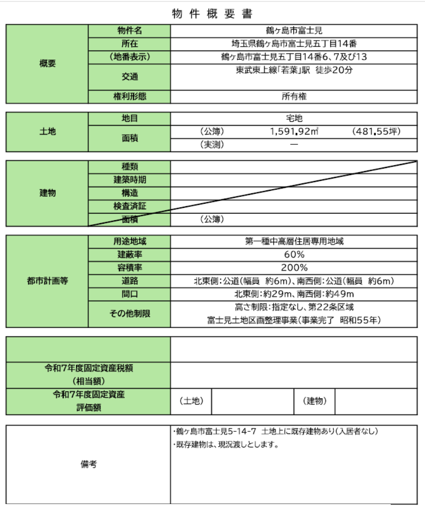 角地、☆鶴ヶ島市富士見5丁目 建築条件無し売地! ☆東武東上線『若葉駅』徒歩20分! ☆土地面積481坪! ☆建築条件はありません。お好きなハウスメーカーで建築できます! ☆広々した土地! ☆陽当たり良好です! ☆公営水道 ☆どなたでも建築できる土地です!(34条11号適用含む) |