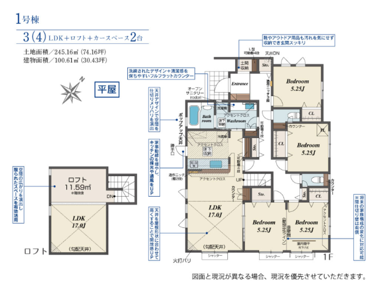 (1F)LDK17、(1F)洋5.25、(1F)洋5.25、(1F)洋10.5、(1F)納戸 |