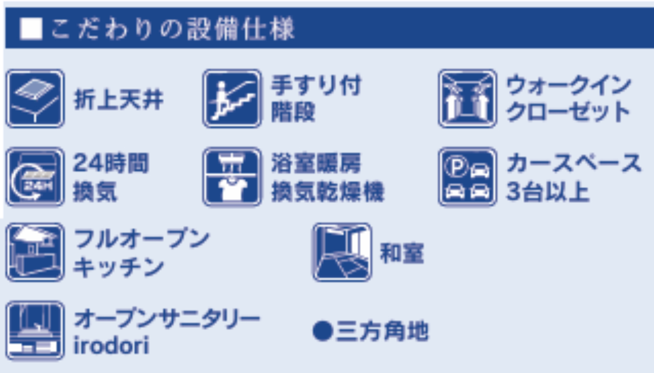 ☆ブルーミングガーデン川越市今成2丁目 新築一戸建て ★新築仲介手数料無料! ☆JR川越線『西川越駅』徒歩22分! ☆東武東上線『川越市駅』徒歩23分! ☆敷地面積44坪! ☆三方向角地の解放感ある立地 ☆折り上げ天井で開放感があるリビング! ☆主寝室にはウォークインクローゼットがあり衣類や荷物が収納できます! ☆駐車場3台! ☆長期優良住宅! ☆住宅性能評価書取得! ☆BELS省エネ! ☆耐震+制震等級3! ☆対面キッチン、食器洗浄乾燥機、24時間換気システム、テレビモニター付きインターホン、浴室乾燥機、温水洗浄便座、ユニットバスなどの設備です! ☆川越市立今成小学校まで徒歩9分、川越市立初雁中学校まで徒歩22分の通学距離です! ☆公営水道、本下水、都市ガス ☆第二ひつじ幼稚園(約130m)、今成保育園(約240m)、エコスTAIRAYA月吉店(約640m)、セブンイレブン川越今成店(約451m)、ウエルシア川越今成店(約525m)、西武本川越PePe(約1900m)、宮沢クリニック(約436m) |