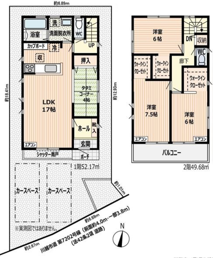 (1F)LDK17、(1F)畳コーナー4、(2F)洋6、(2F)洋7.5、(2F)洋6 |