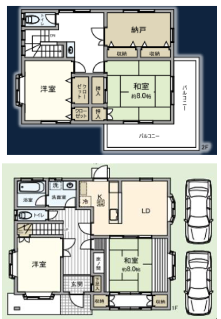 (1F)LDK、(1F)和8、(1F)洋、(2F)和8、(2F)洋、(2F)納戸 |