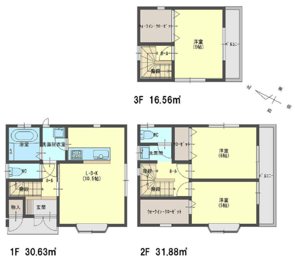 (1F)LDK10.5、(2F)洋6、(2F)洋5、(3F)洋6 |