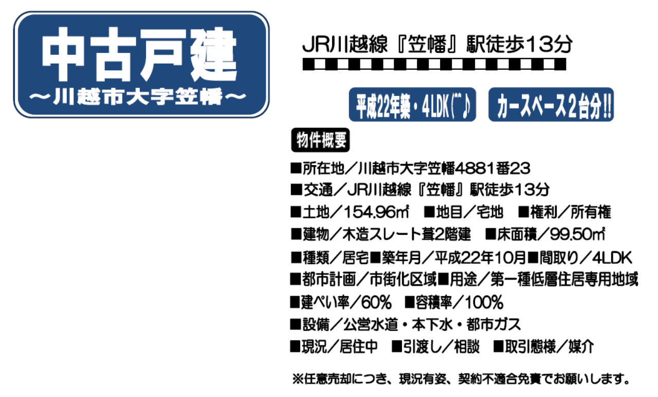 川越市大字笠幡 |