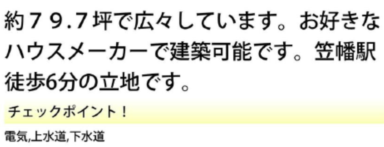 ☆敷地79坪! ☆JR川越線 笠幡駅 徒歩6分 ☆公営水道、公共本下水、プロパンガス ☆日当り良好! |