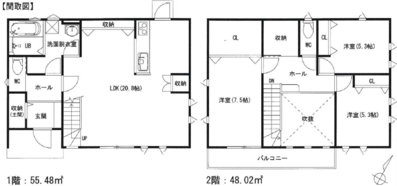 (1F)LDK20.8、(2F)洋7.5、(2F)洋5.3、(2F)洋5.3 |