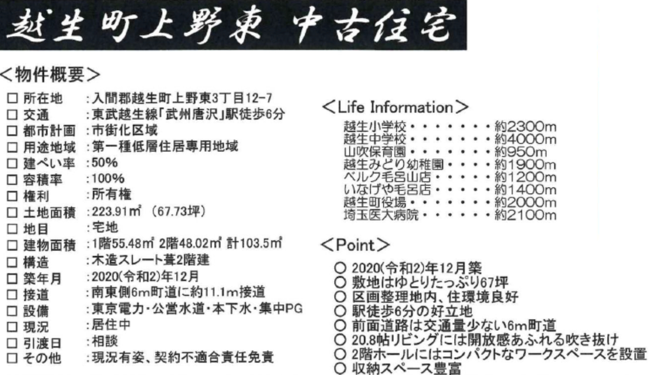 東武越生線武州唐沢駅まで 徒歩6分 |