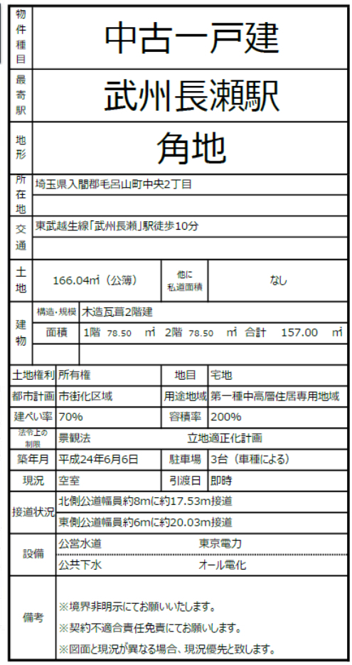 東武越生線武州長瀬駅まで 徒歩10分 |