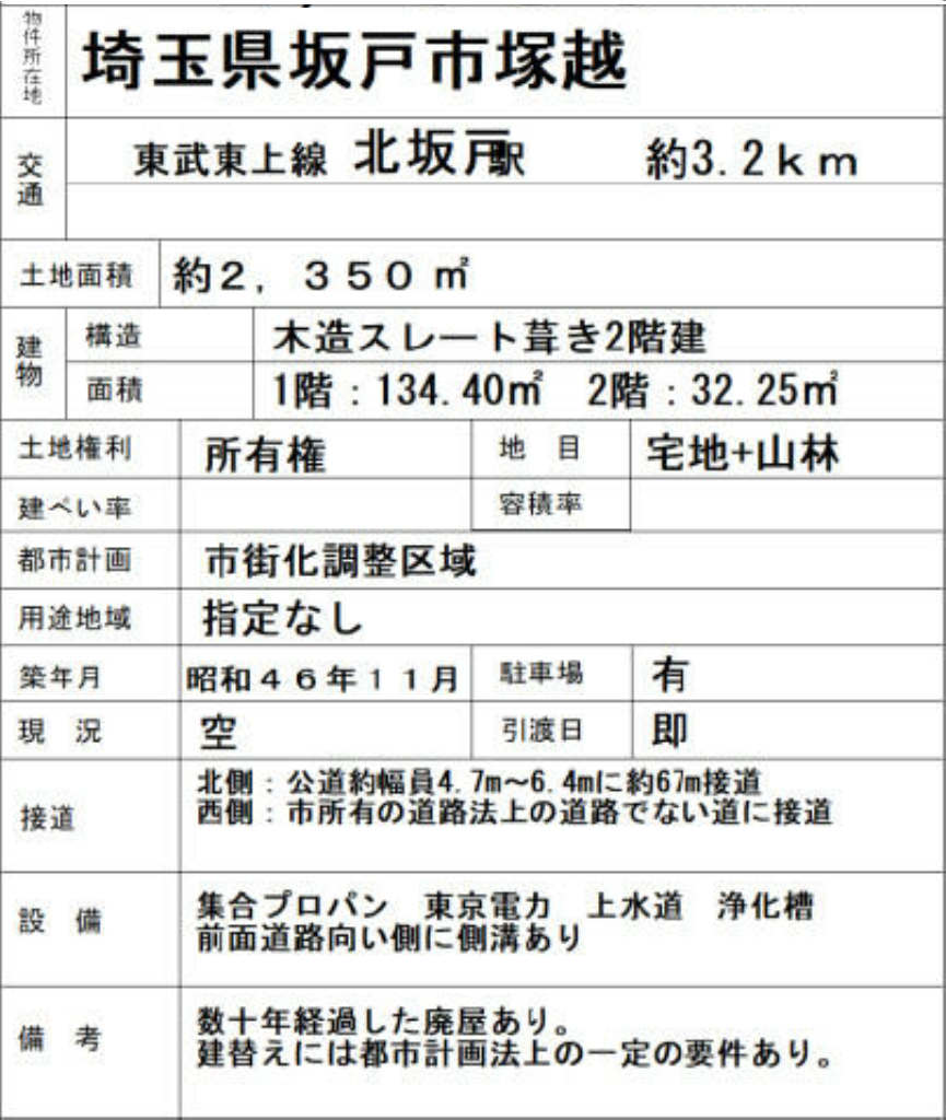 東武東上線北坂戸駅まで 徒歩40分 |