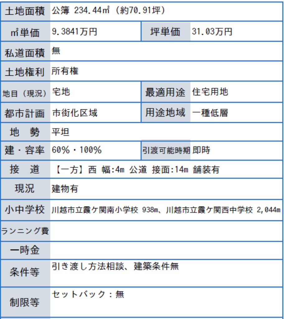 ☆土地面積70坪! ☆陽当たり良好です! ☆川越市立霞ヶ関南小学校まで徒歩10分、霞ヶ関中学校まで徒歩20分の通学距離です! ☆公営水道、公共本下水、都市ガス ☆どなたでも建築できる土地です! |