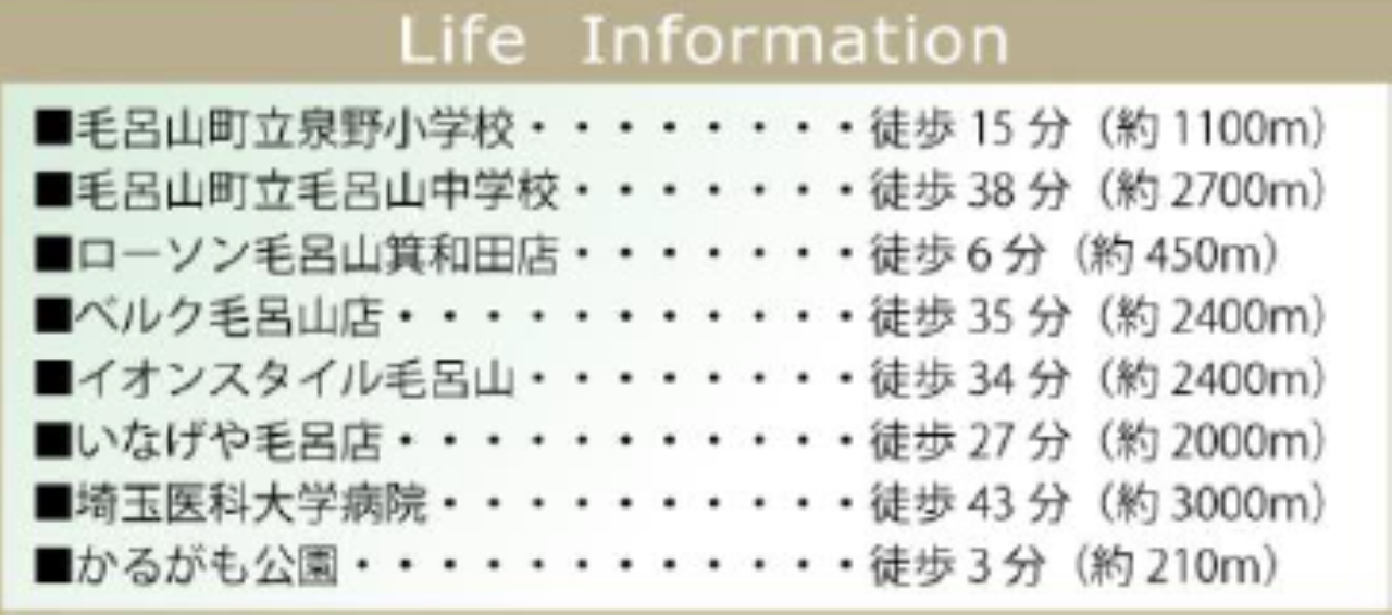 東武越生線東毛呂駅まで 徒歩26分 |