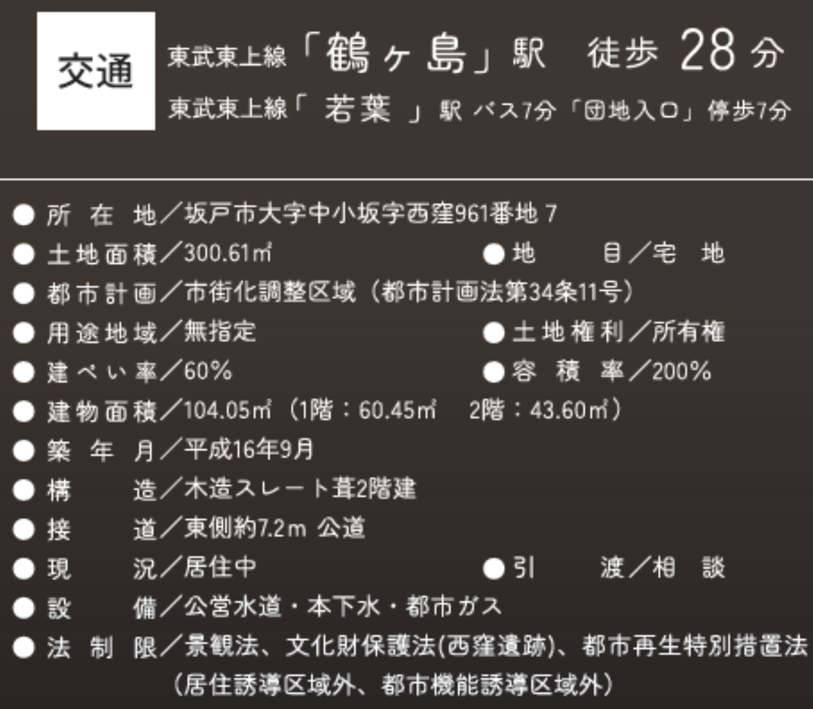 東武東上線鶴ヶ島駅まで 徒歩28分 |