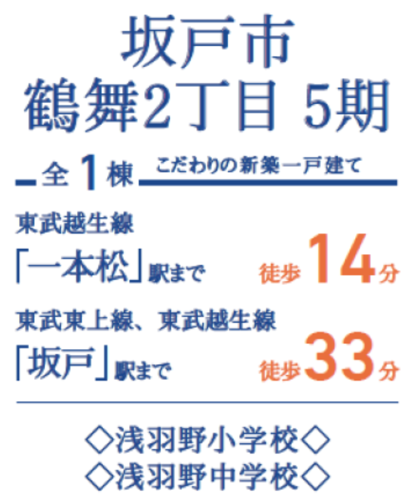 ☆坂戸市鶴舞2丁目4期 新築一戸建て ※本物件は仲介手数料無料ではございません。 ☆東武生越線『一歩松駅』徒歩15分! ☆東武東上線『坂戸駅』徒歩33分! ☆敷地面積59坪! ☆玄関に土間収納がありベビーカーやスポーツ用品などがしまえます! ☆2階11帖洋室は生活スタイルに合わせて2部屋にすることもできます! ☆使い勝手の良いダブルバルコニー! ☆駐車場2台! ☆フラット35S利用可! ☆長期優良住宅! ☆住宅性能評価書取得! ☆BELS省エネ! ☆耐震等級3・耐震ダンパー! ☆坂戸市立浅羽野小学校、浅羽野中学校の通学区です ☆公営水道、本下水、集中プロパンガス ☆大家幼稚園(約2200m)、あさば保育園(約684m)、セブンイレブン坂戸浅羽店(約642m)、ヤオコー一本松南店(約2000m)、ウエルシア坂戸鶴舞厚川店(約677m)、鶴ヶ島下新田郵便局(約564m)、浅羽クリニック(約822m)、かえる公園(約220m) |