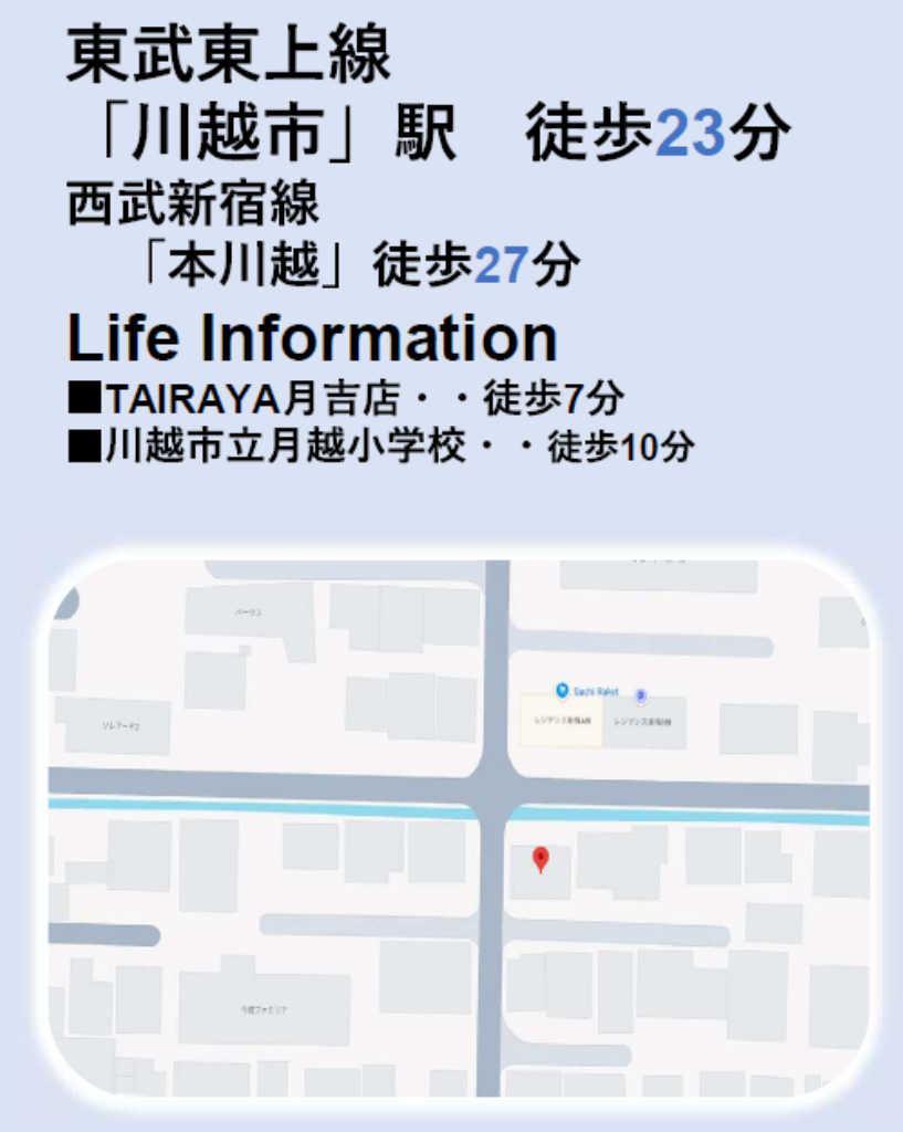 西武新宿線本川越駅まで 徒歩27分 |