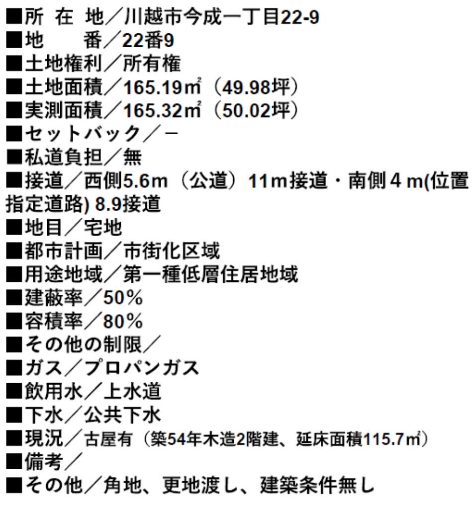 ★仲介手数料無料土地! ☆土地面積49坪! ☆建築条件無し! ☆更地引渡し! ☆川越市立月越小学校の通学区 ☆公営水道、公共本下水、プロパンガス ☆どなたでも建築できる土地です!(34条11号適用含む) |