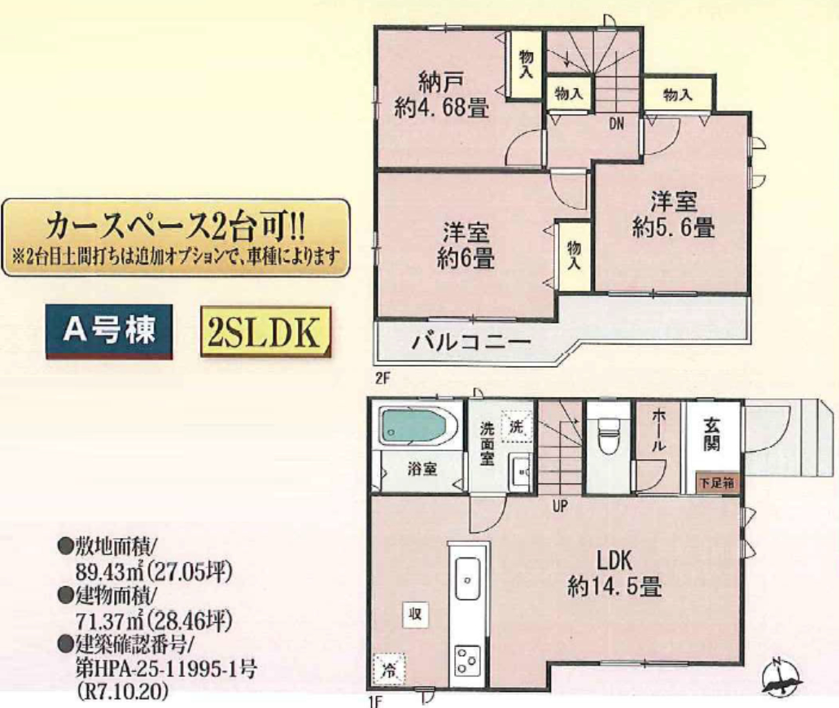 (1F)LDK14.5、(2F)洋5.6、(2F)洋6、(2F)納戸4.68 |