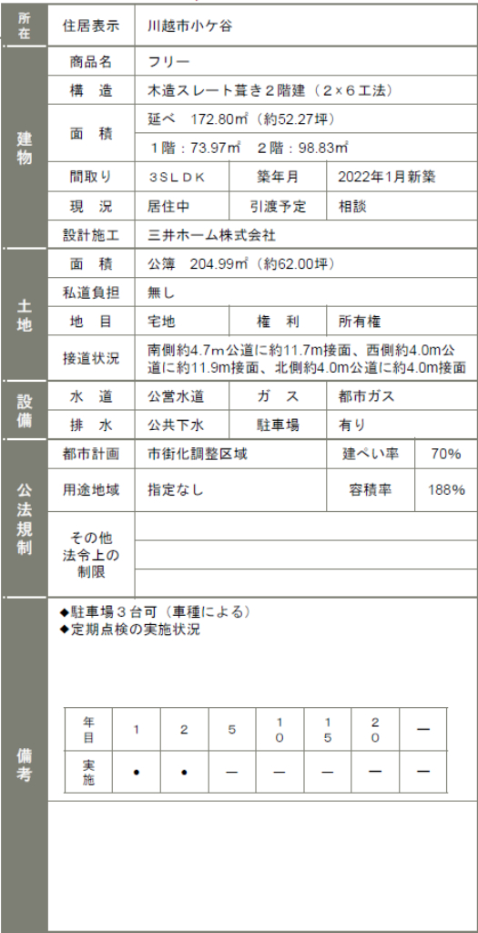 ☆川越市小ヶ谷三井ホーム施工の注文住宅 ☆築3年のきれいな住宅です! ☆LDK38帖の2Fリビングです! ☆耐震性に優れた三井ホーム2×6工法(プレミアム・モノコック構法)! ☆高い耐震性と気密性を誇る住宅です! ☆高断熱屋根構造パネル「DSP」採用! ☆三方向角地の明るい日差しの入る家! ☆南4m道路 ☆公営水道、本下水、都市ガス ☆駐車場2台 ☆日当り良好! ☆耐震×制震装置 ☆こだわりの家 ☆全館空調スマートブリーズ搭載! |
