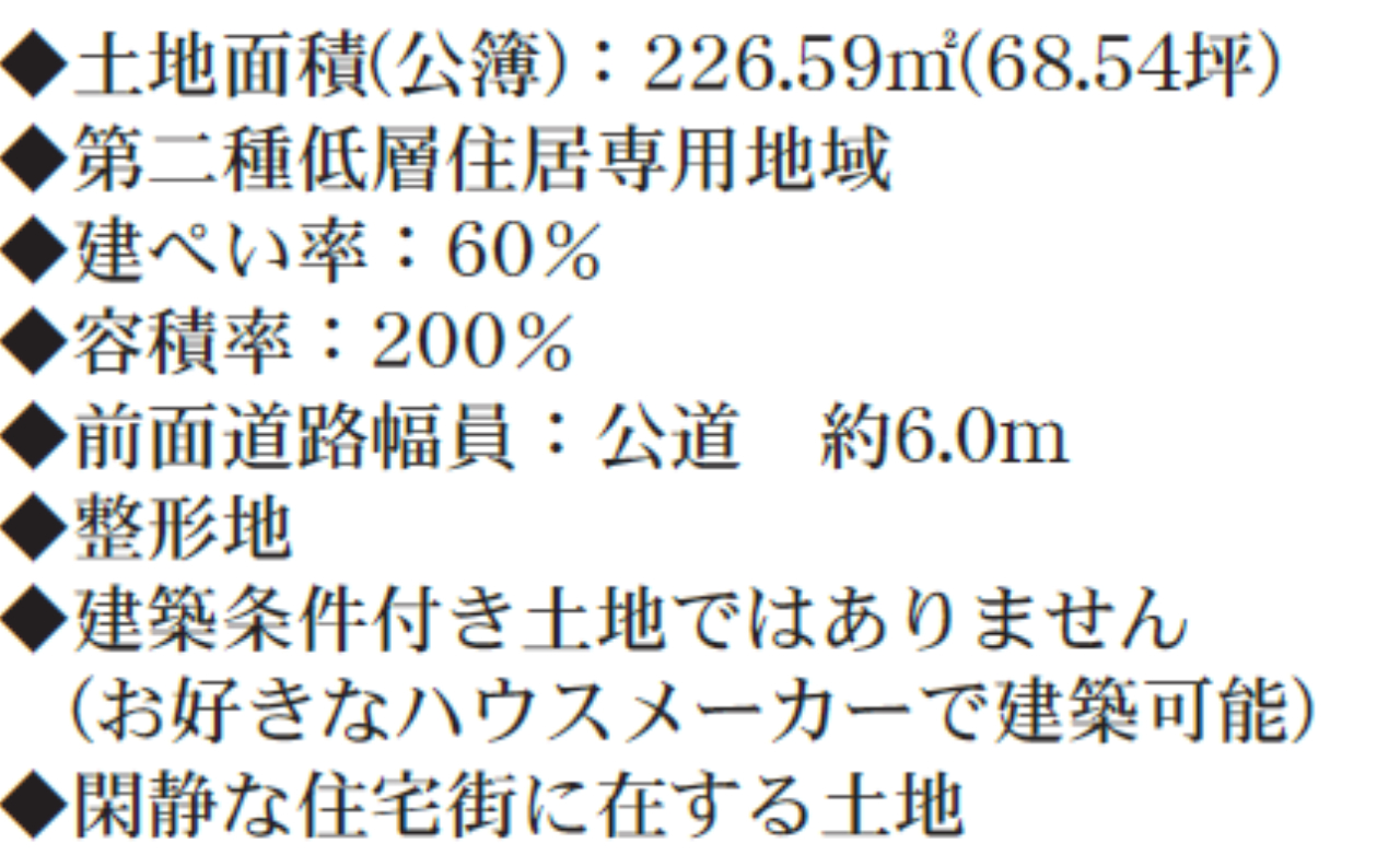 ☆敷地面積68坪! ☆建築条件無し! ☆川越市立川越西小学校まで徒歩1分、川越西中学校まで徒歩6分! ☆公営水道、公共本下水 |