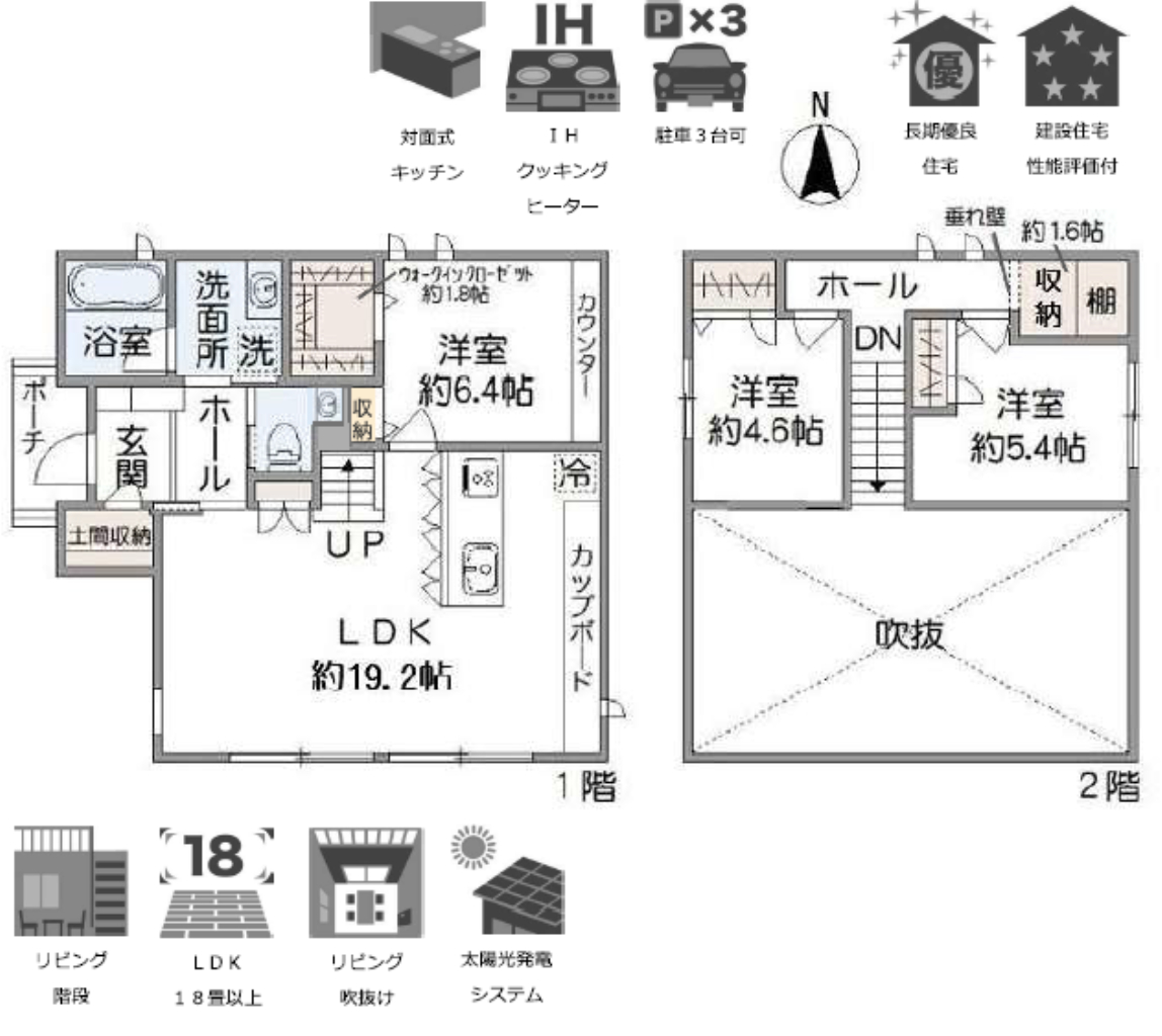 (1F)LDK19.2、(1F)洋6.4、(2F)洋4.6、(2F)洋5.4 |