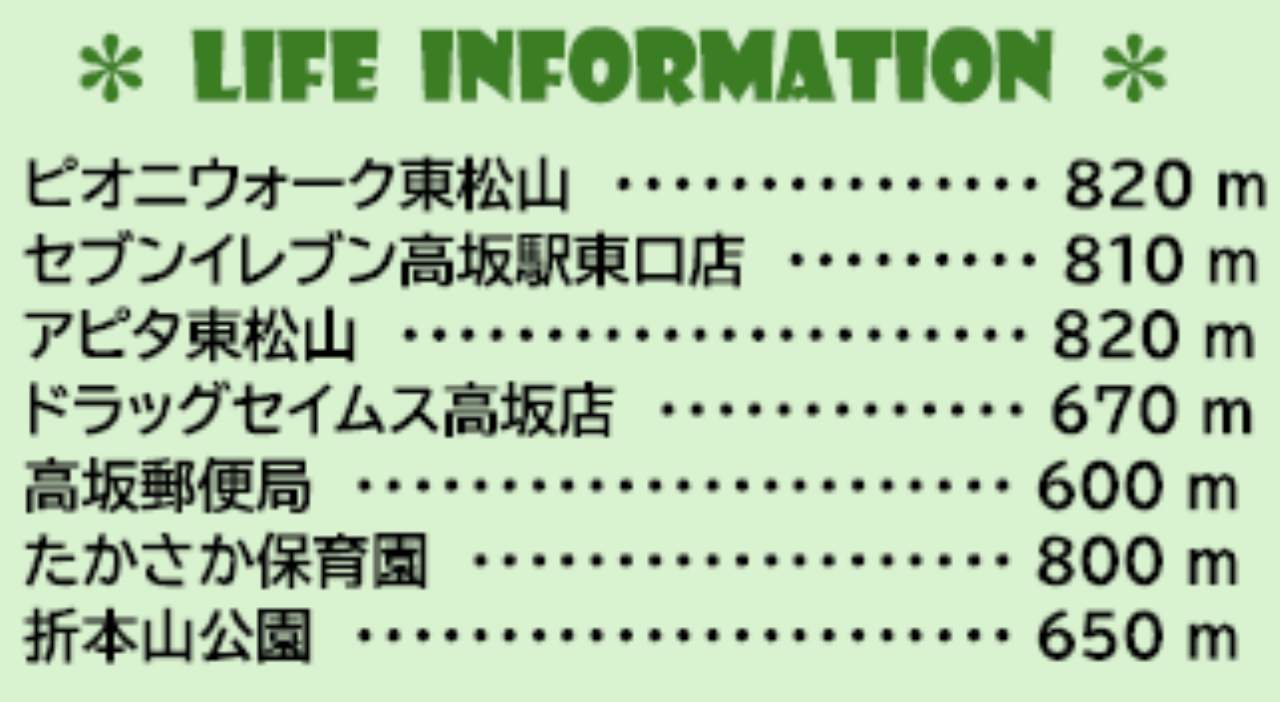東武東上線高坂駅まで 徒歩11分 |