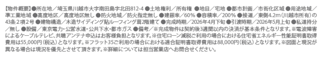 ☆川越市南田島 新築一戸建て ★新築仲介手数料無料! ☆JR川越線『南古谷駅』徒歩17分! ☆敷地面積26坪! ☆お料理しながら家族とコミュニケーションが取りやすい対面キッチン付きのリビング! ☆瑕疵担保保険加入物件! ☆住宅性能評価書取得予定物件! ☆フラット35S利用可! ☆公営水道、本下水、都市ガス ※現地販売業者さんは売主ではございません。 アンケート等の手続きをされますと当社での物件紹介(仲介料手数料無料)が出来なくなります。ご内覧を希望のお客様は当社にて立ち合い・ご案内をさせて頂きますのでお手数ですがTEL049-285-6300までお電話下さい。急いで現地へ向かいますので御連絡お待ちしております。 |