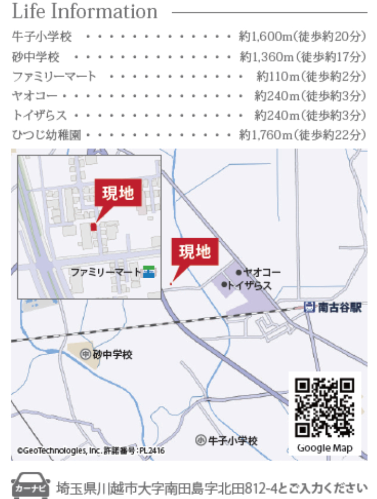 JR川越線南古谷駅まで 徒歩17分 |